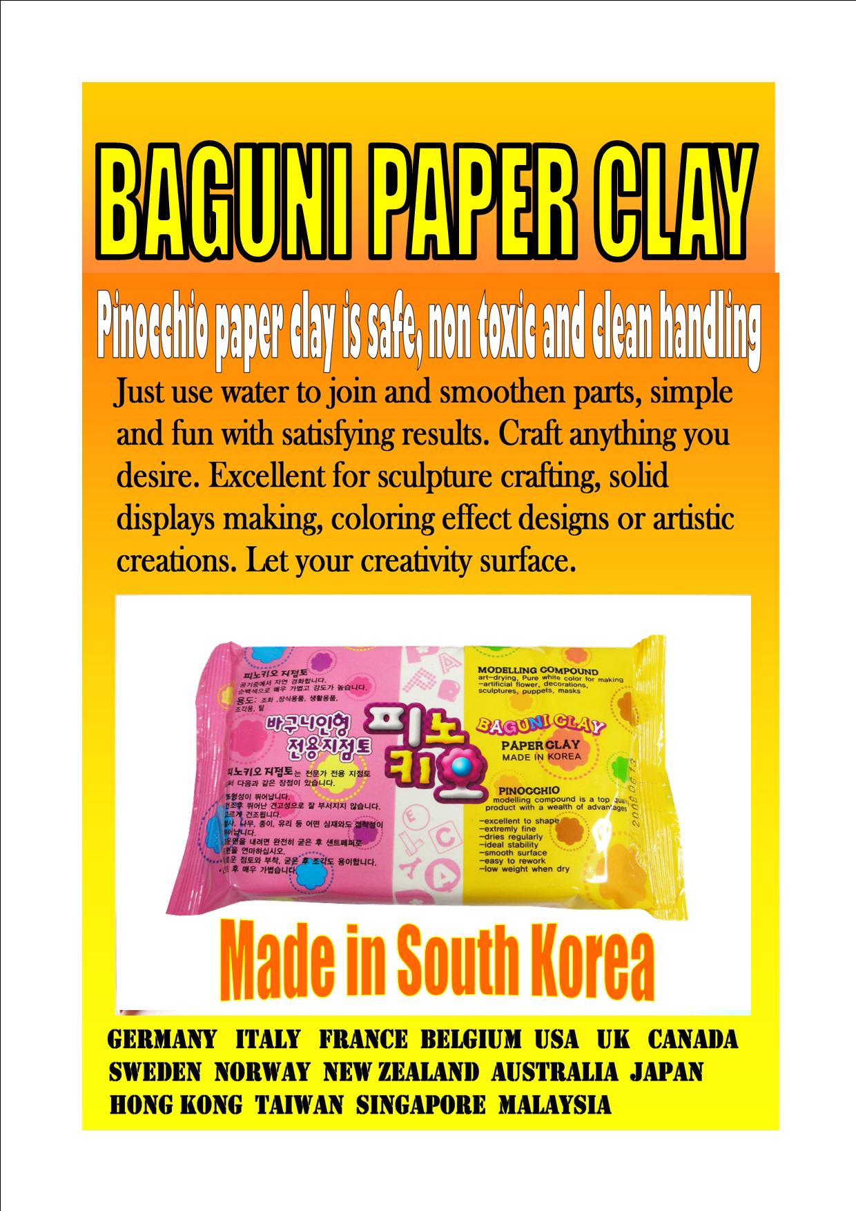 Excellent quality paper clay for handcrafted work and suitable for home or school projects.No smearing and diluting effect and proven to work with many types of colour or even Magic Craft light polymer clay. International quality product.